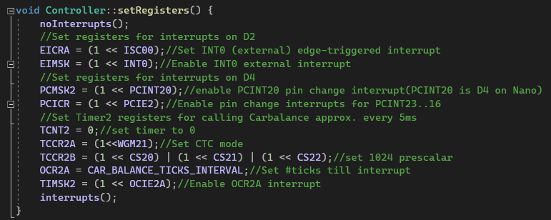 Figure 1 - Setting the registers to enable the carBalance() function to be called approx.