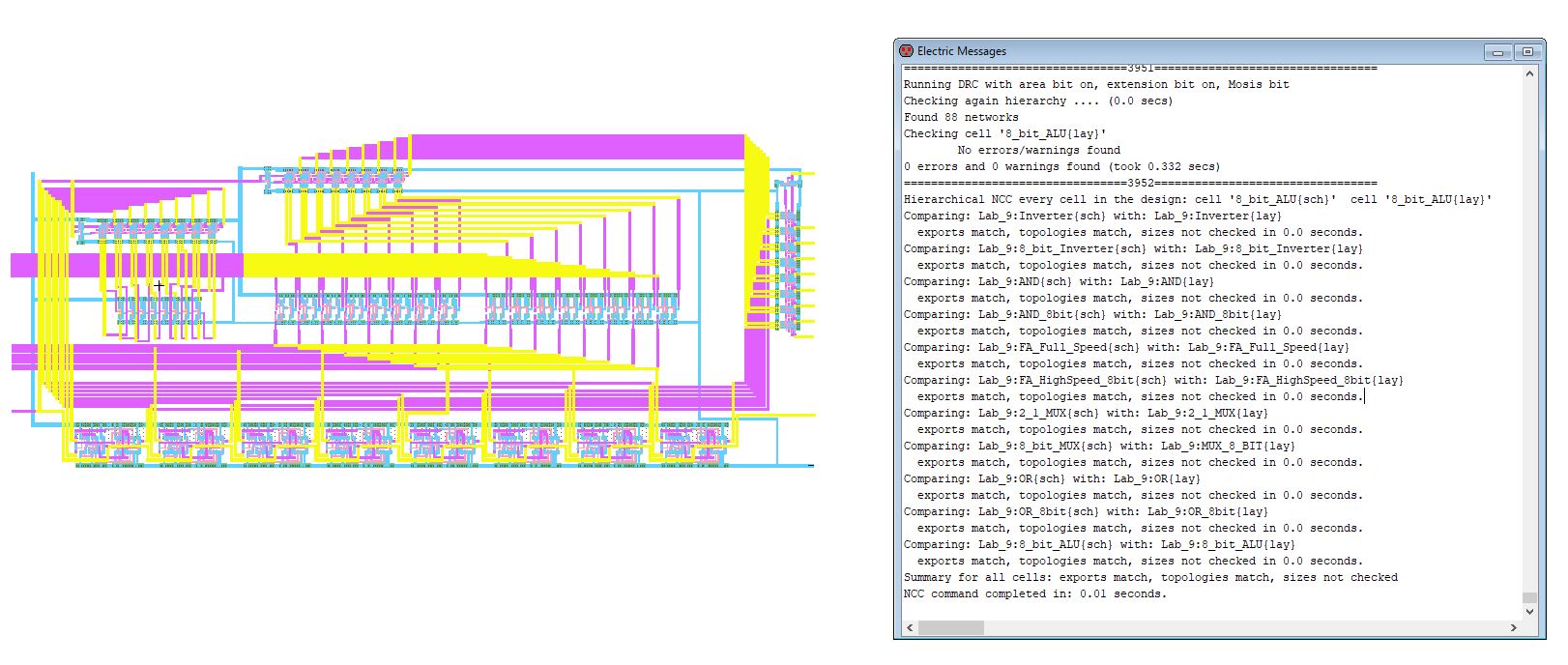Figure 7: The 8-bit ALU layout, with zero errors and matching topologies.