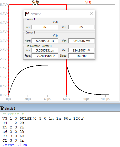 Figure 5: Simulation results and spice code for the thevenin's equivalent circuit.