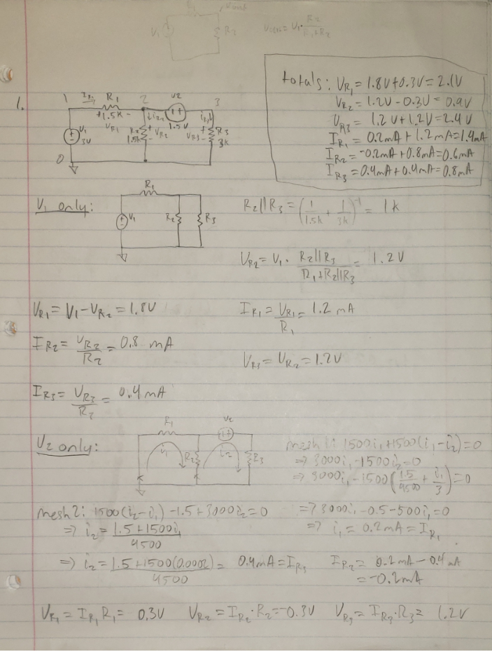 Superposition and thevenin's equivalent calculations were done by hand, and the spice simulation circuits were built with code.