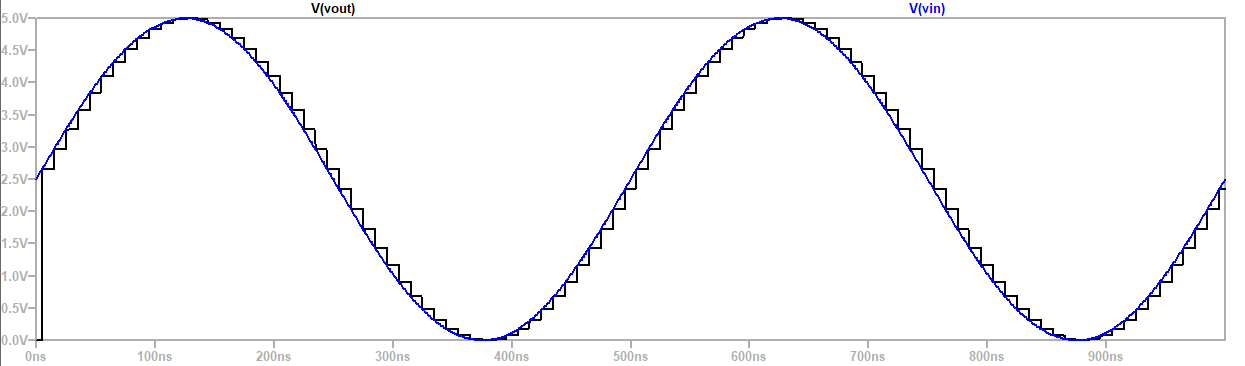Figure 1: Simulated input and output of the ADC DAC circuit.