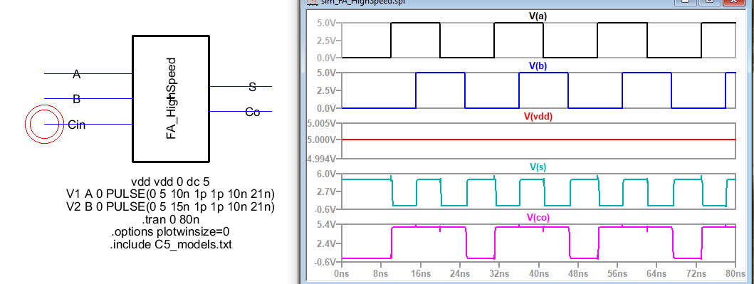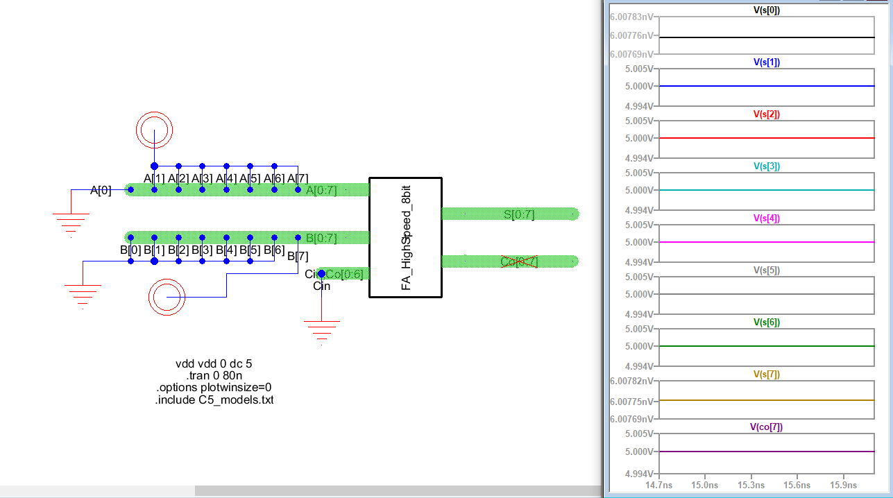 Figure 11: Simulation of the 8-bit high-speed full adder.