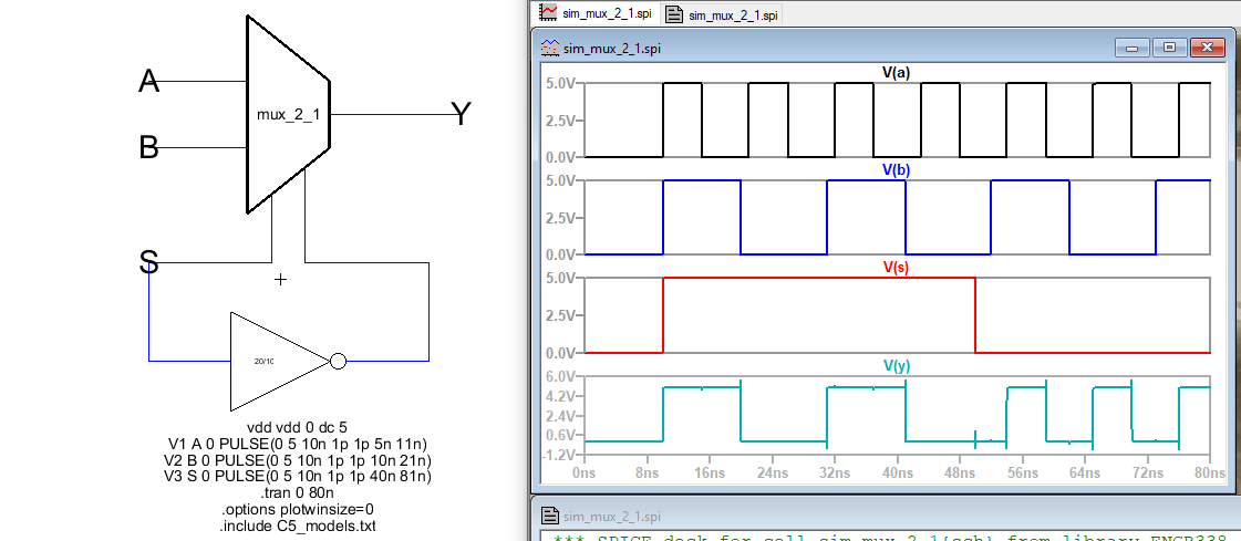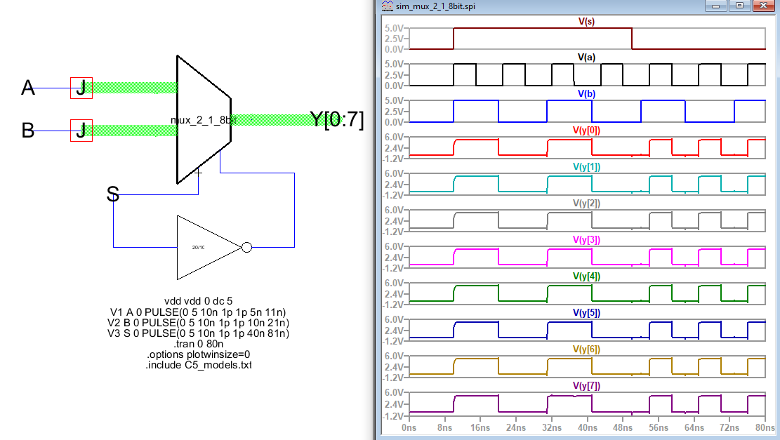 Figure 4: Simulation of the 8-bit 2 to 1 MUX.