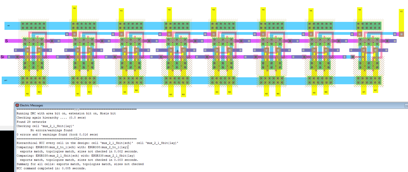 Figure 6: Layout of the 8-bit 2 to 1 MUX.