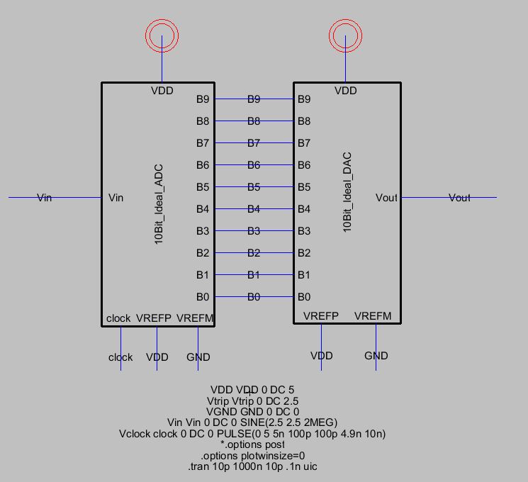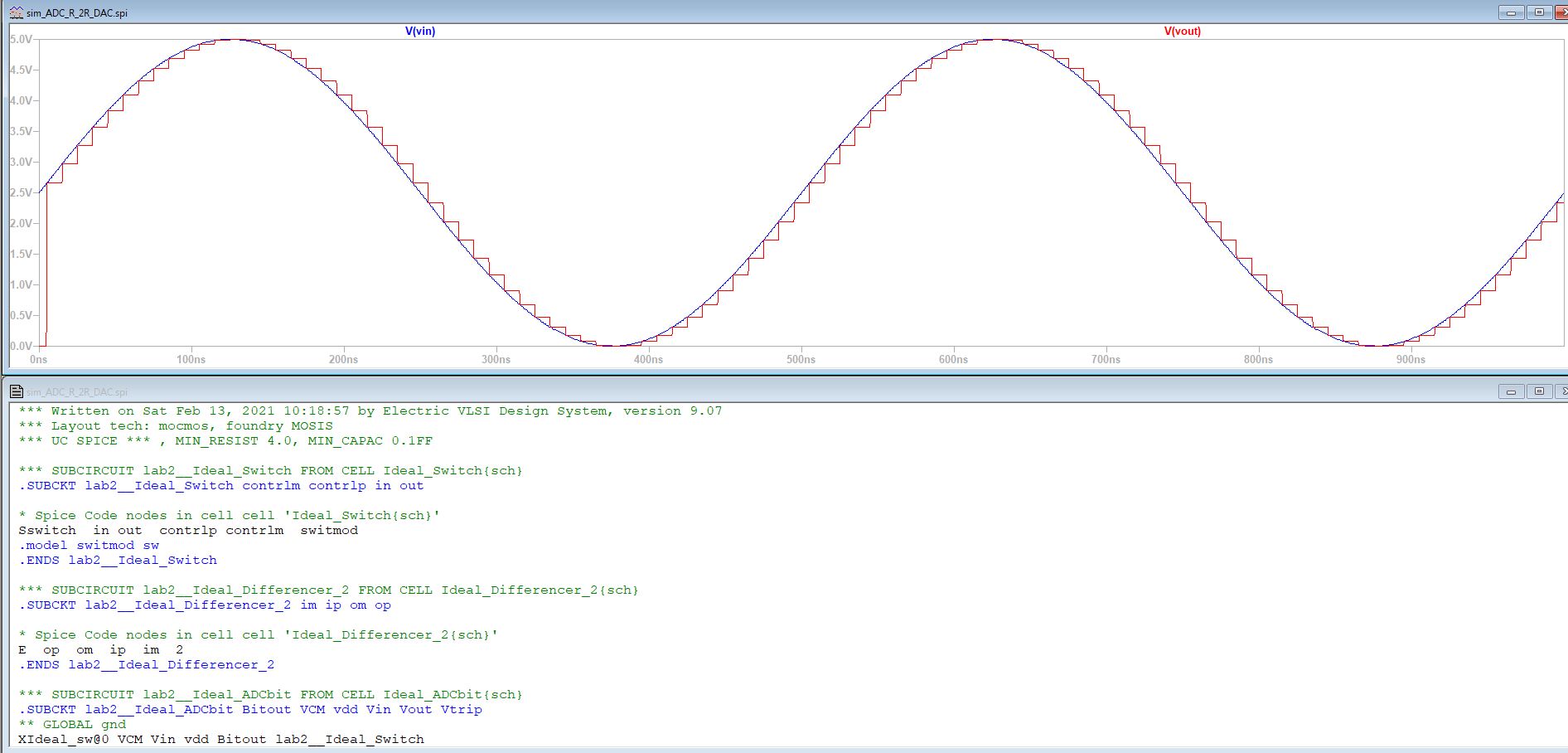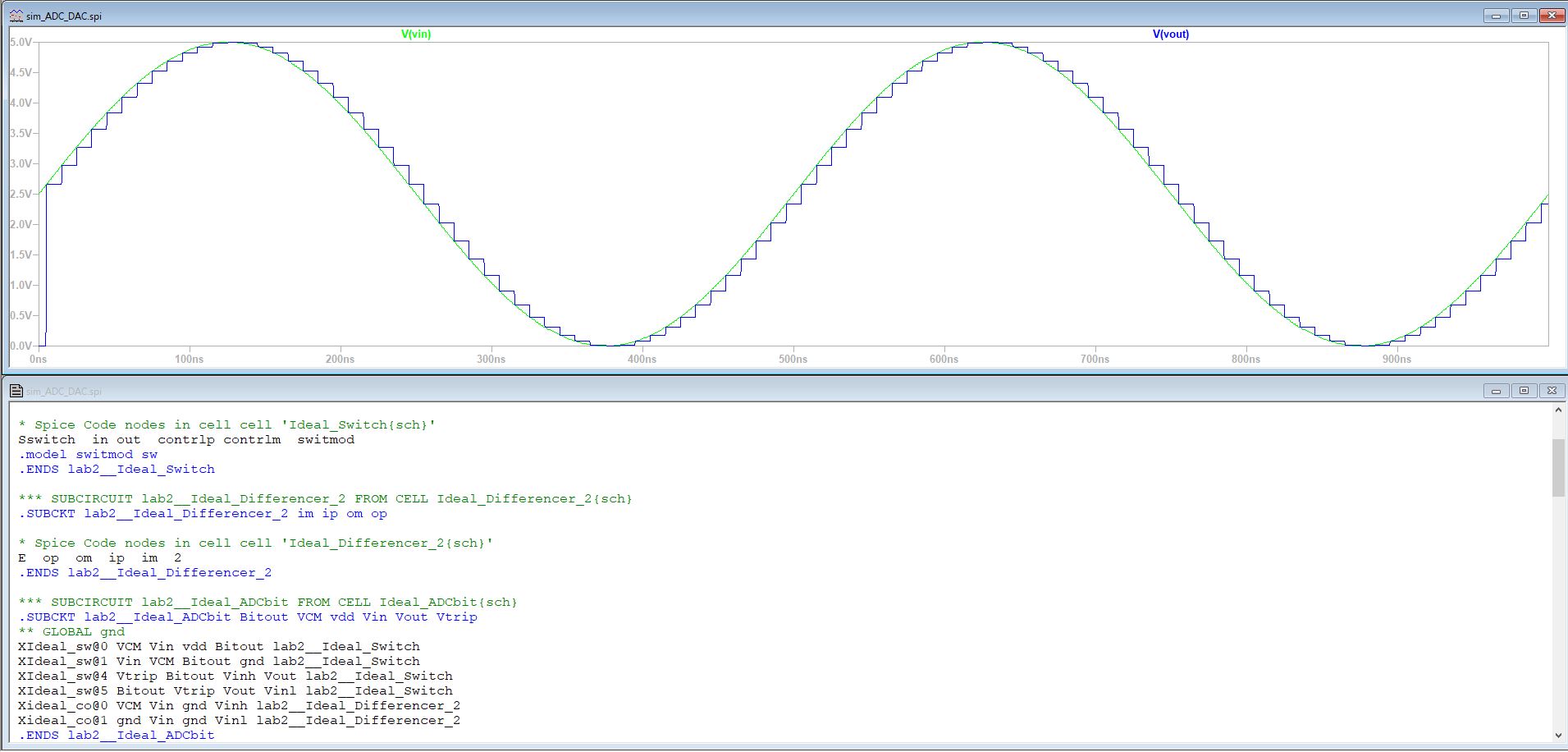 An ideal ADC/DAC (sim_ADC_DAC{schem}) file was copied to a new library and simulated using LTSpice as seen in Figure 2.