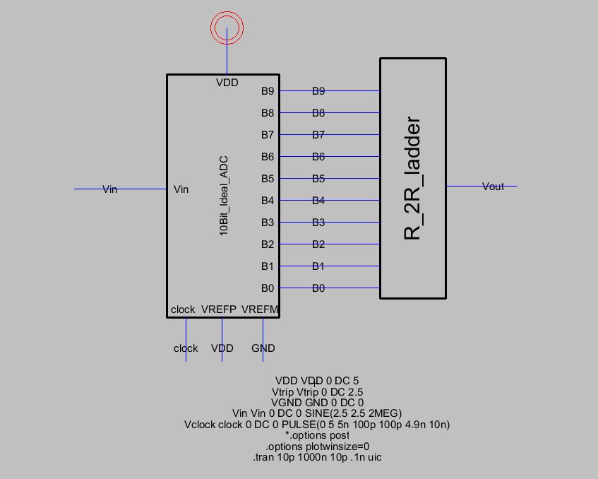 was used to simulate the R-2R ladder connected to the 10-bit ideal ADC.