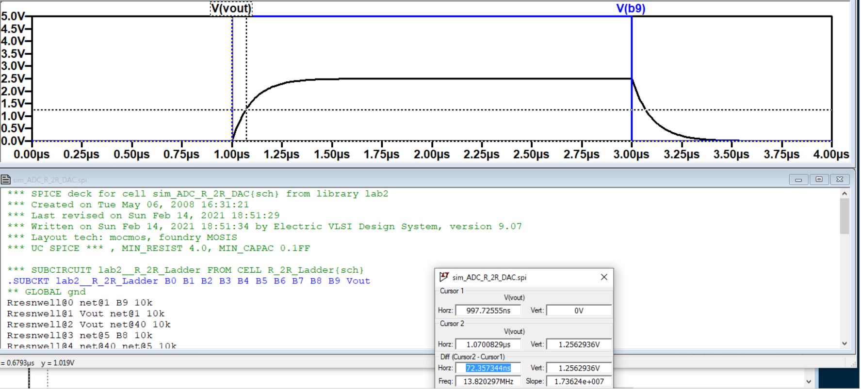 This lab introduced me to ElectriVLSI and allowed me to become familiar with the program. I gained more of an understanding of ADC and DACs.