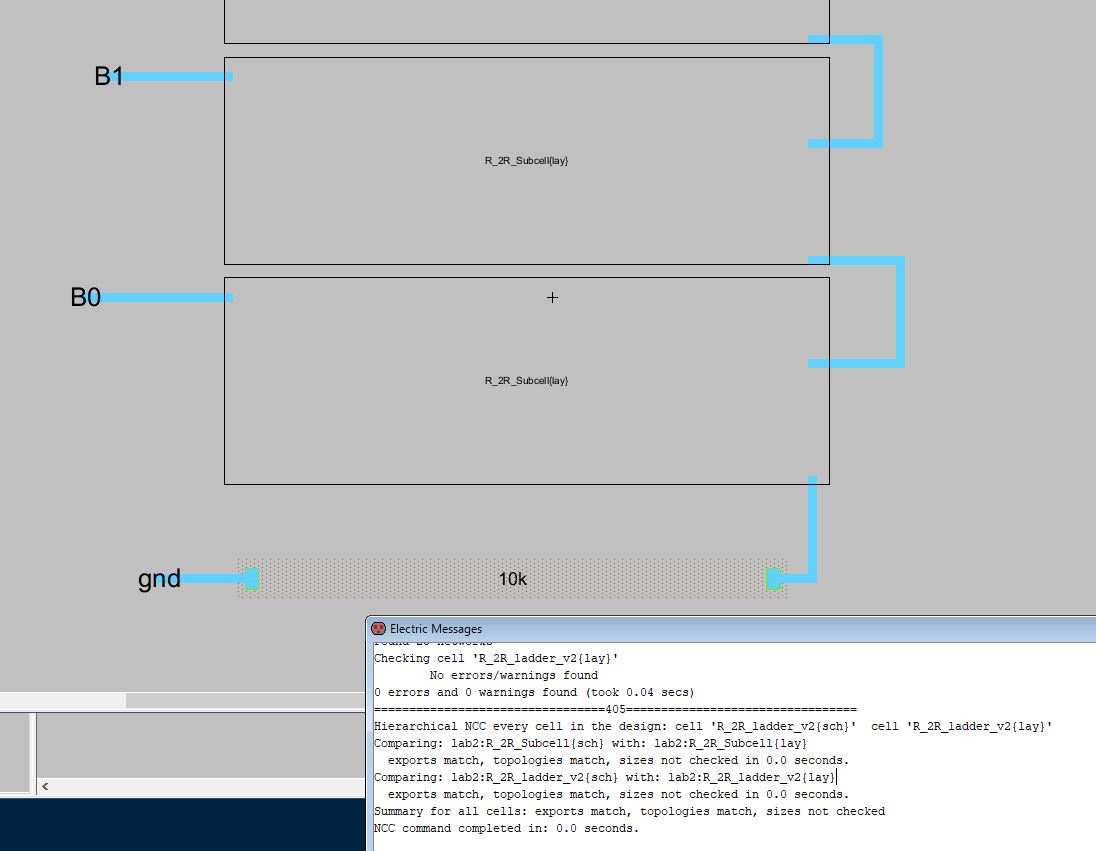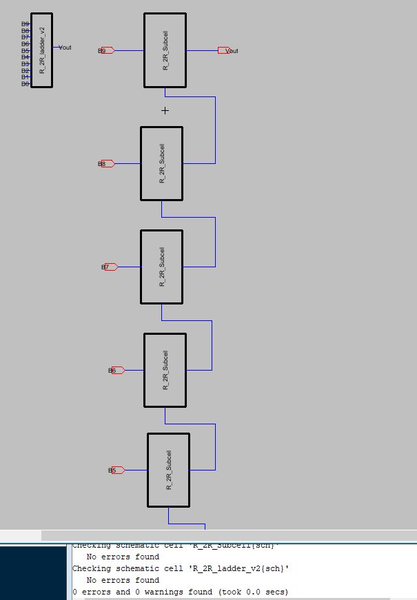 for a R-2R ladder. A subcell was created to make debugging a large design easier.
