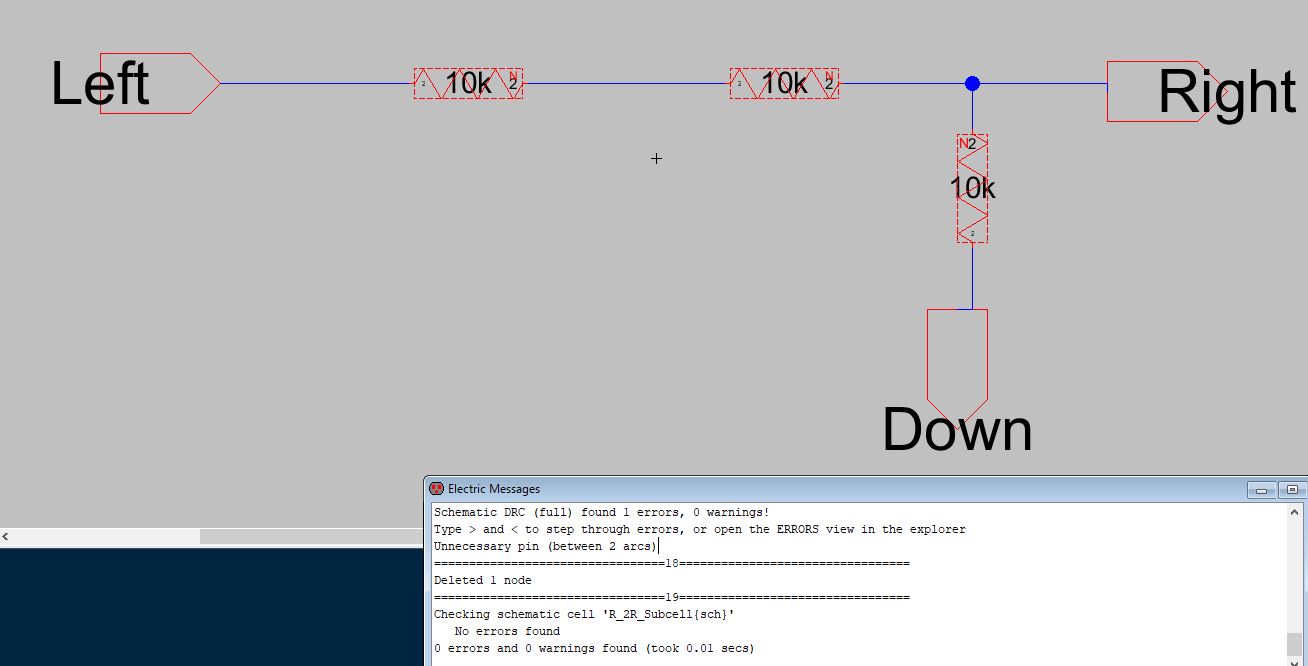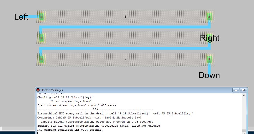 A subcell with a portion of the R-2R ladder was created and DCR checked for