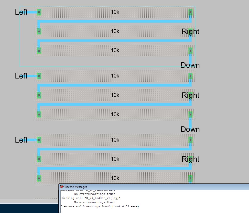 ladder. A layout was created for the R-2R ladder. Three 10k n-well