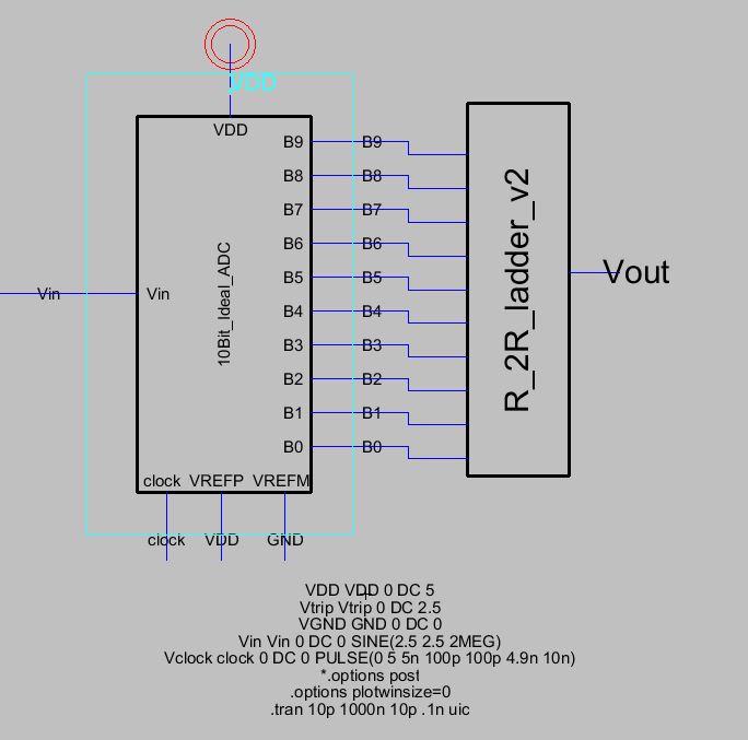 Figure 7. Connecting 10-bit ideal ADC to the new R_2R_ladder_v2 icon.
