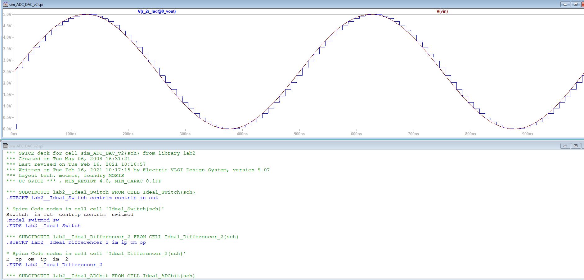 Figure 8. Simulation and code in LTSpice for the ideal ADC with the R_2R ladder.
