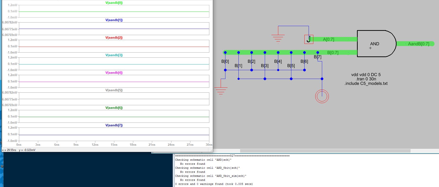 Figure 7. Connecting the A[0:7] gate to gnd and simulating
