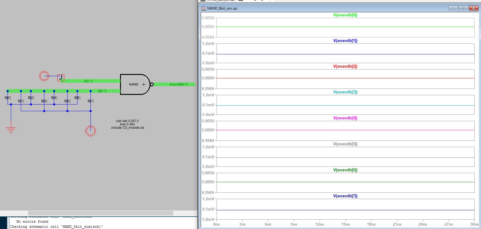 Figure 15. Simulating the logic of the 8-bit NAND schematic using LTSpice.
