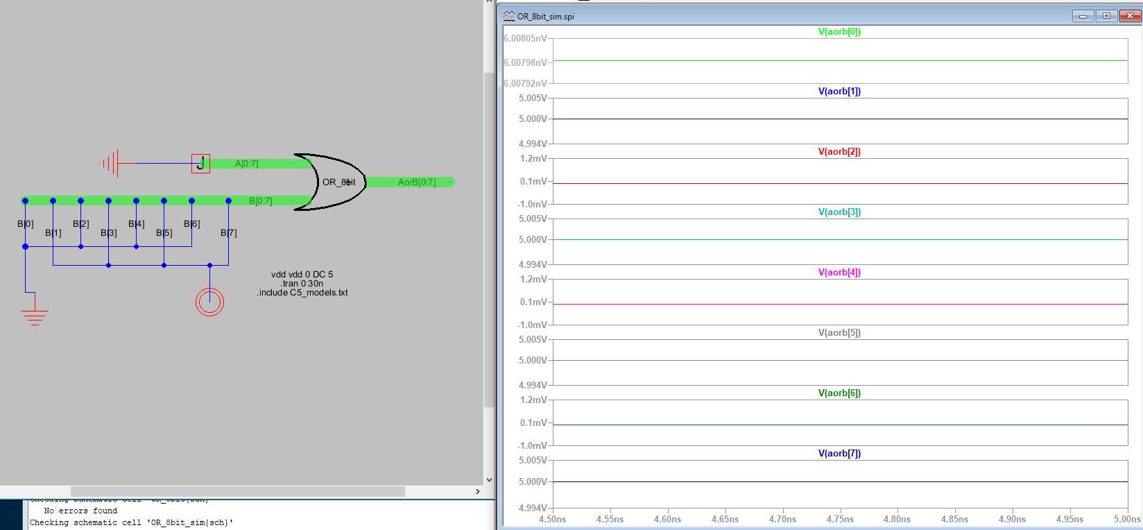 Figure 12. Simulating the logic of the 8-bit OR schematic using LTSpice.