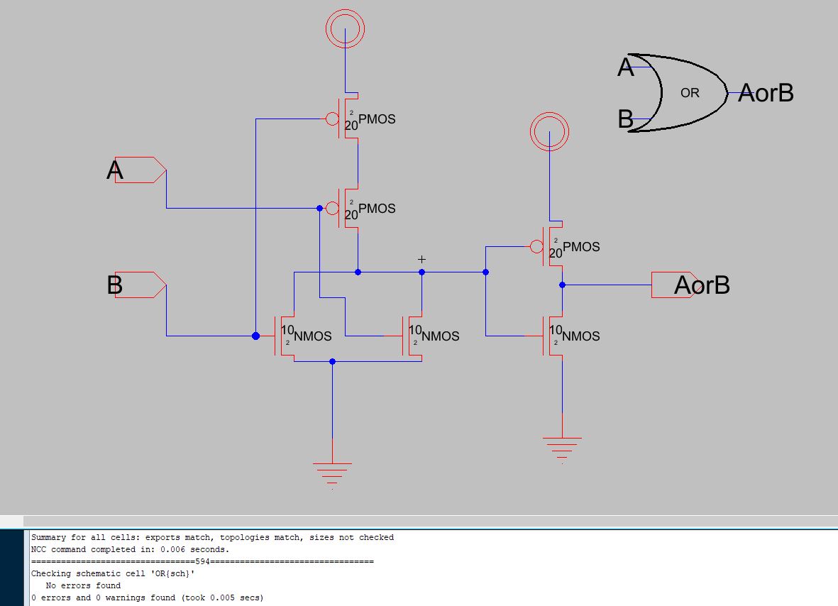 Figure 10. OR schematic and verifying the logic using LTSpice.