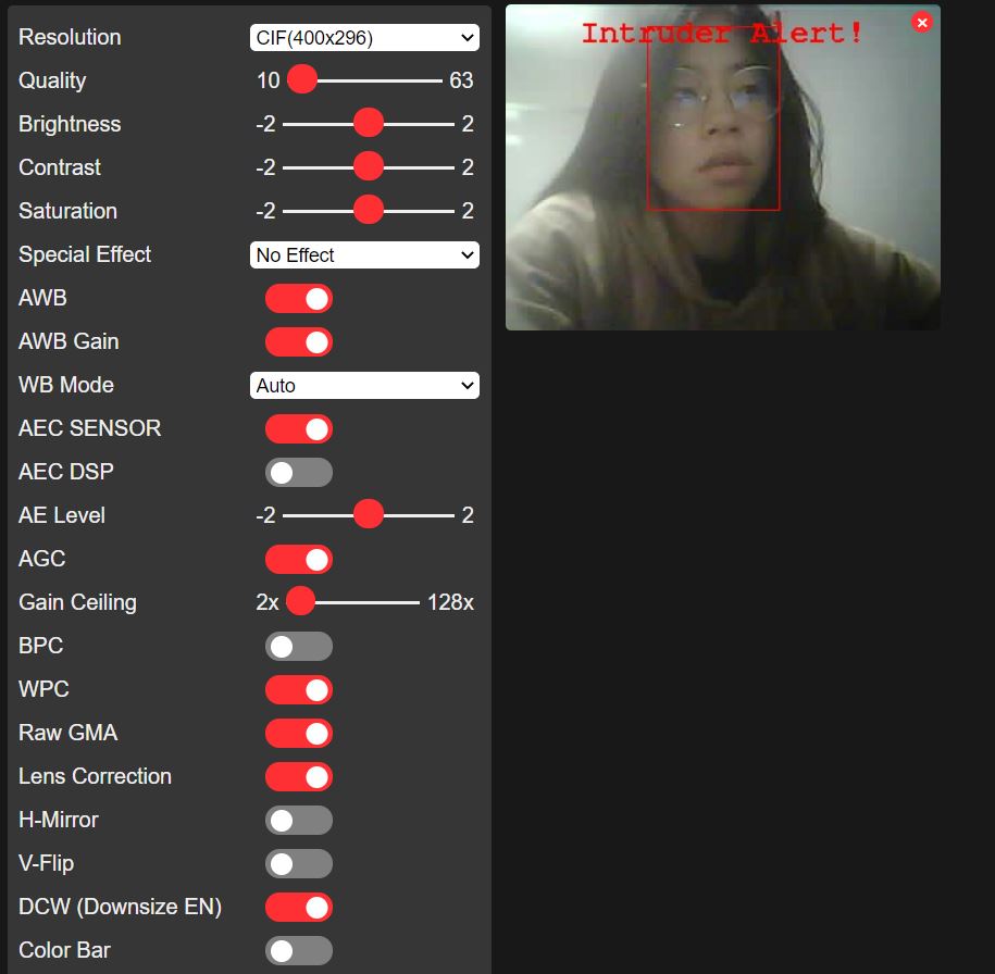 detection was accomplished in the CameraWebServer as seen in Figure 3.