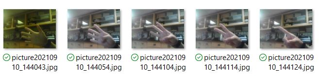 Figure 2. Five photos taken on the ESP32-CAM in 10 second increments.