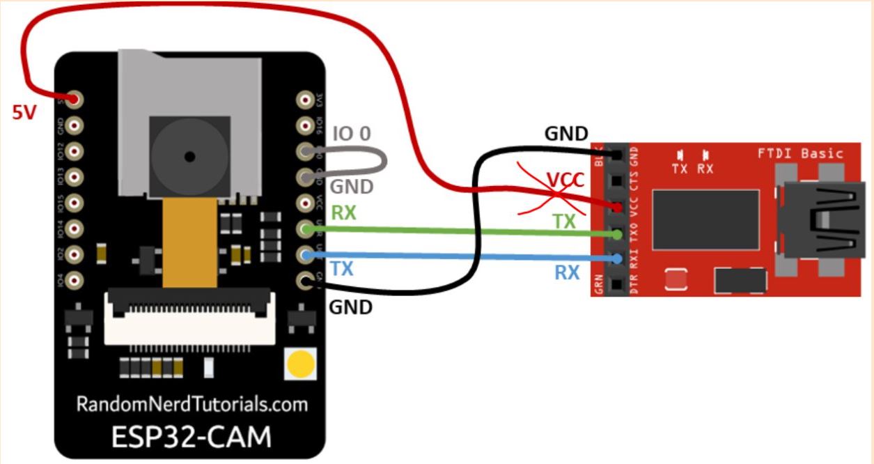 ESP32-CAM was connected using FTDI cable and bread board using the