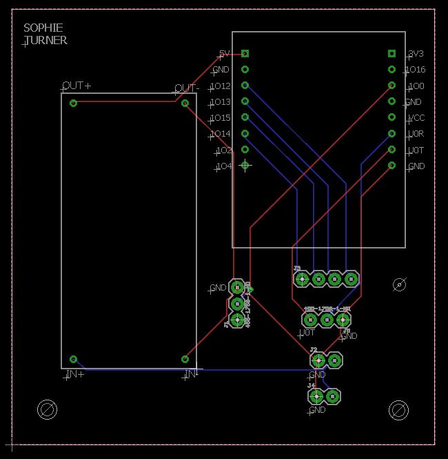the prototype board. In Eagle I designed a PCB to hold the ESP32 and the