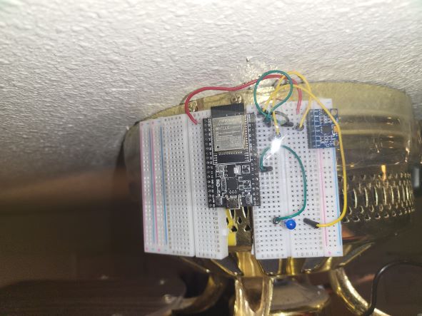 Figure 2. The ESP32 and MPU6050 circuit taped to a ceiling fan.