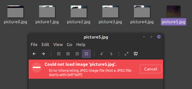 of the picture wasn't able to be seen and was made up of gray pixels.