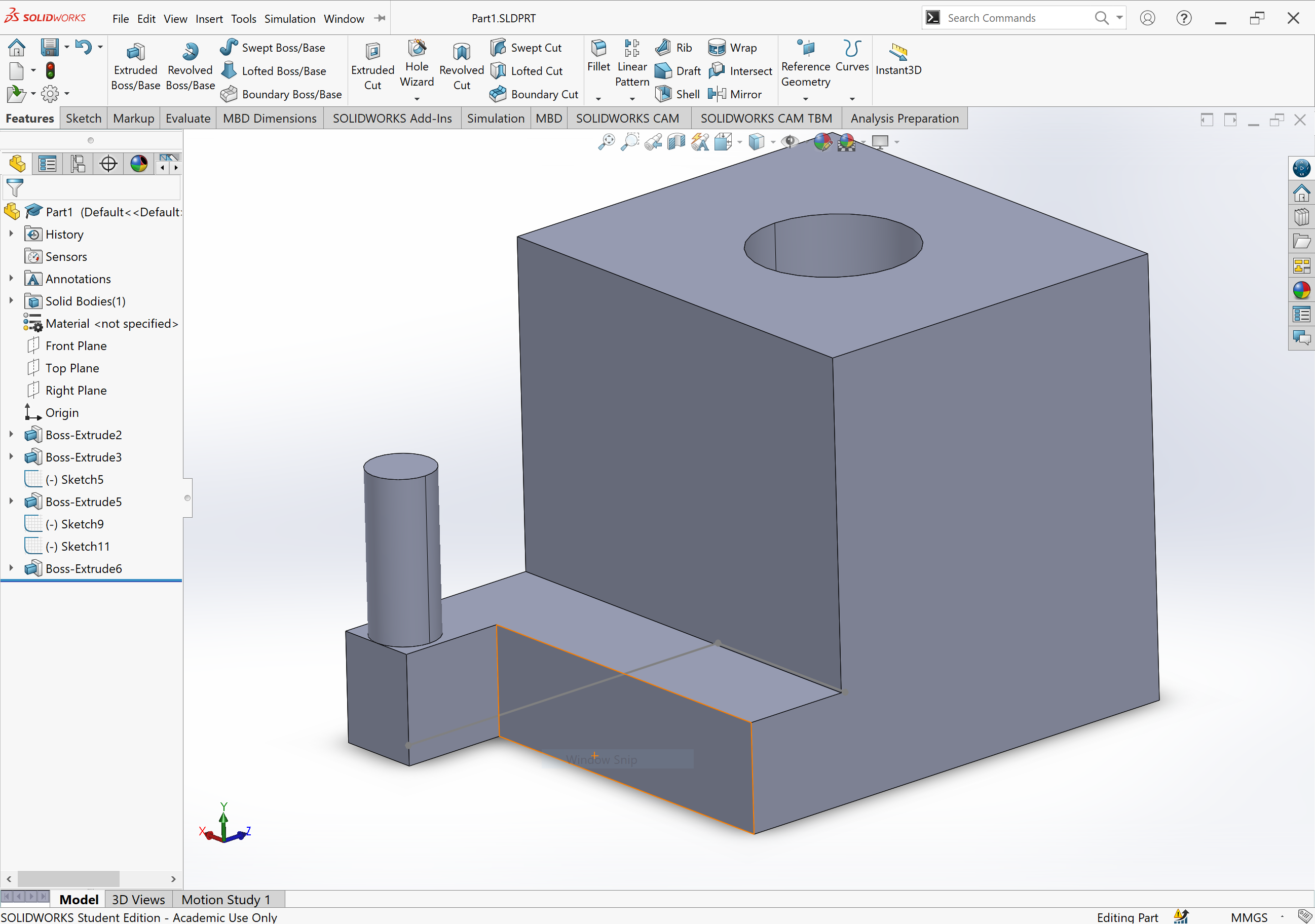 Figure 1. Screenshot of the final model of the part created in Solidworks.