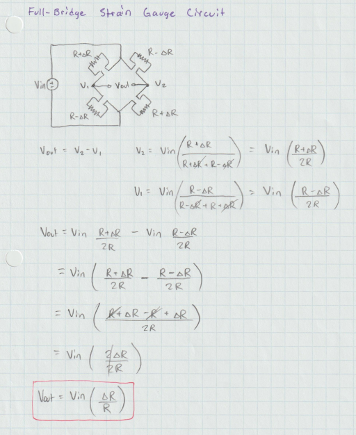 Figure 3. Calculating Vout for the full-bridge Wheatstone circuit.