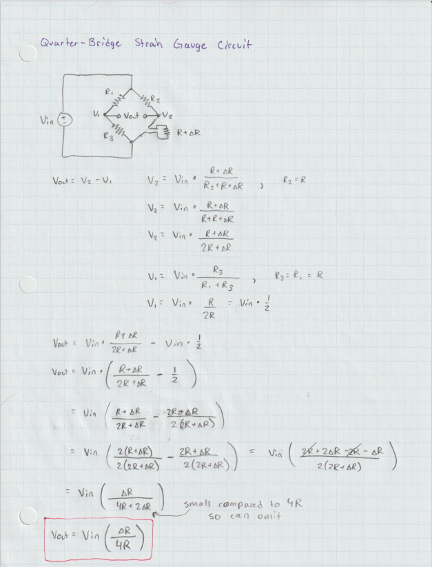 Figure 1. Calculating Vout for the quarter-bridge Wheatstone circuit.