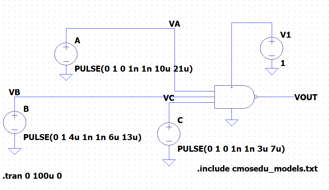 Figure 3. Simulaton schematic for the 3-input NAND gate.
