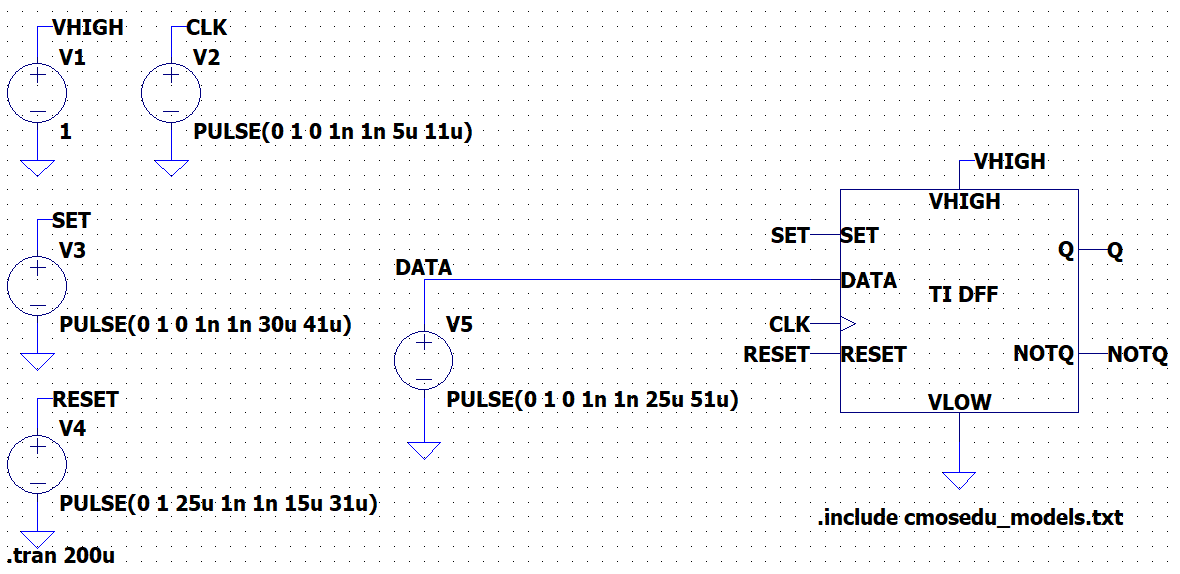 DFF. The simulation schematic used is shown in Figure 7 and the LTSpice