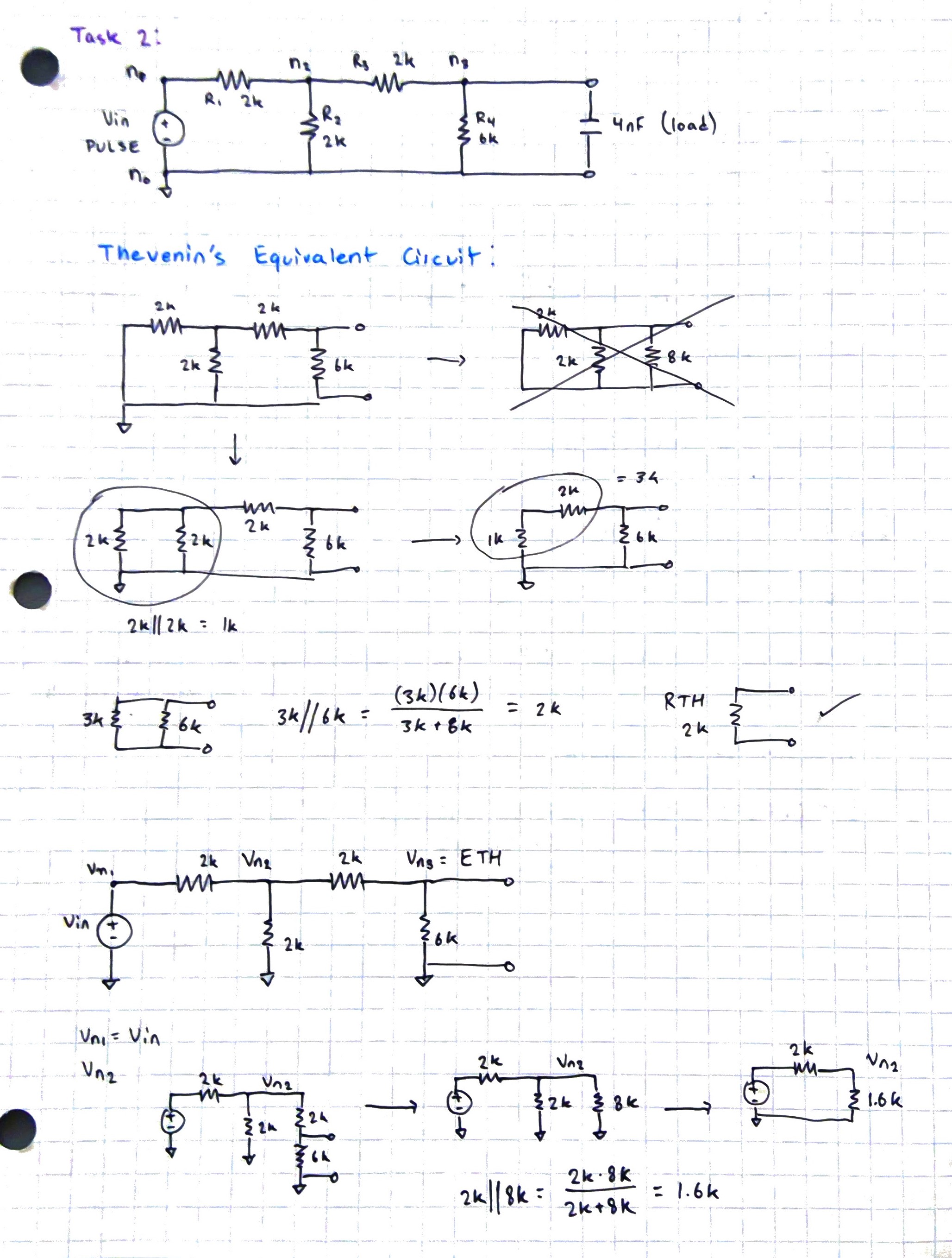 task 2 the Thevenin's equivalent circuit and time delay was worked out