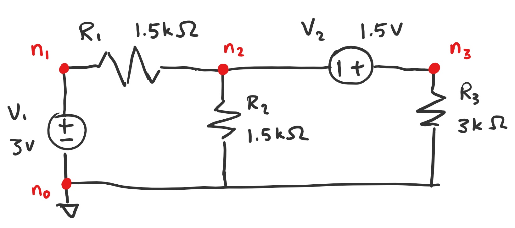 Figure 7: Plotted node voltages for nodes 1, 2, and 3.