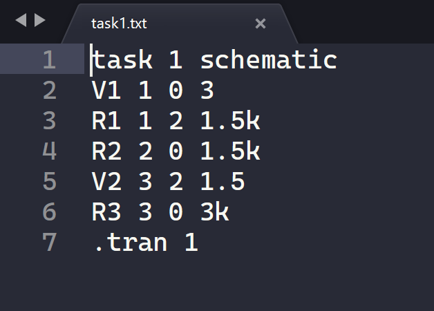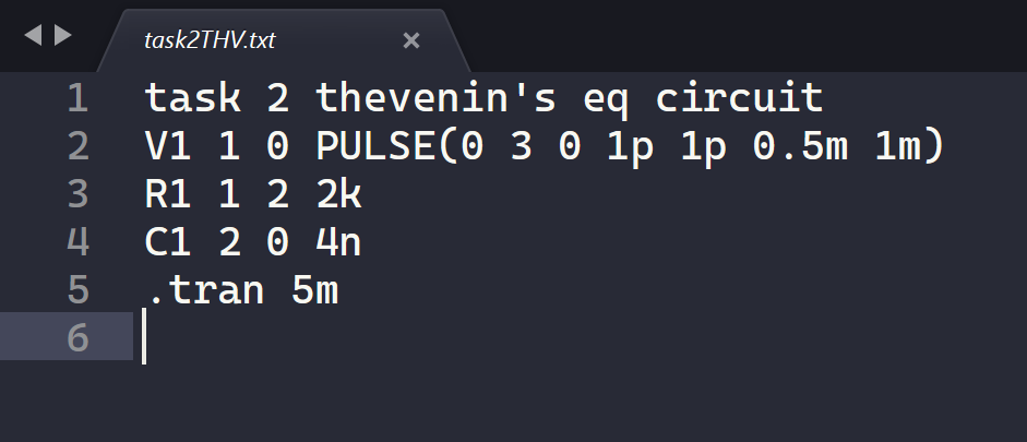 The spice code for task 2's Thevenin's equivalent circuit is shown below in Figure 12.