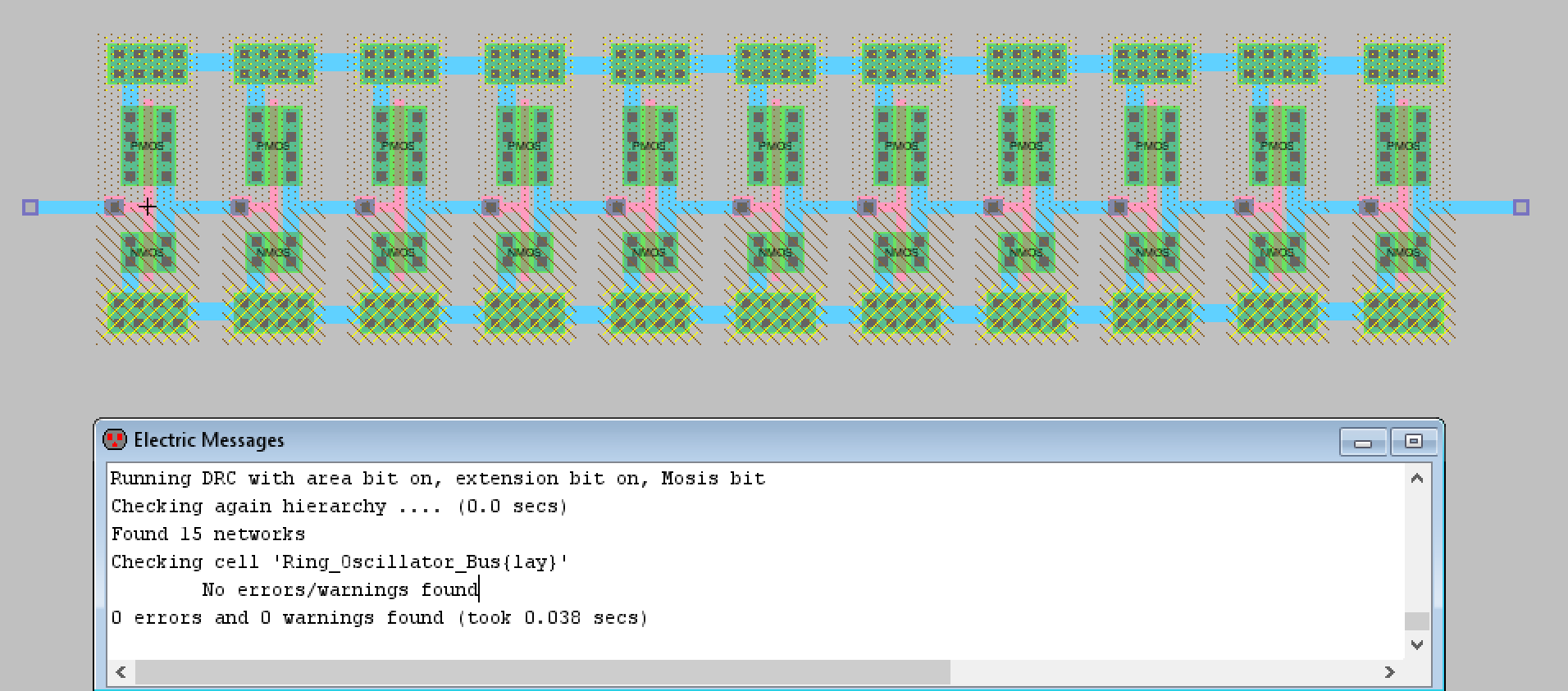 Figure 4. Ring Oscillator Bus schematic with DRC check results.