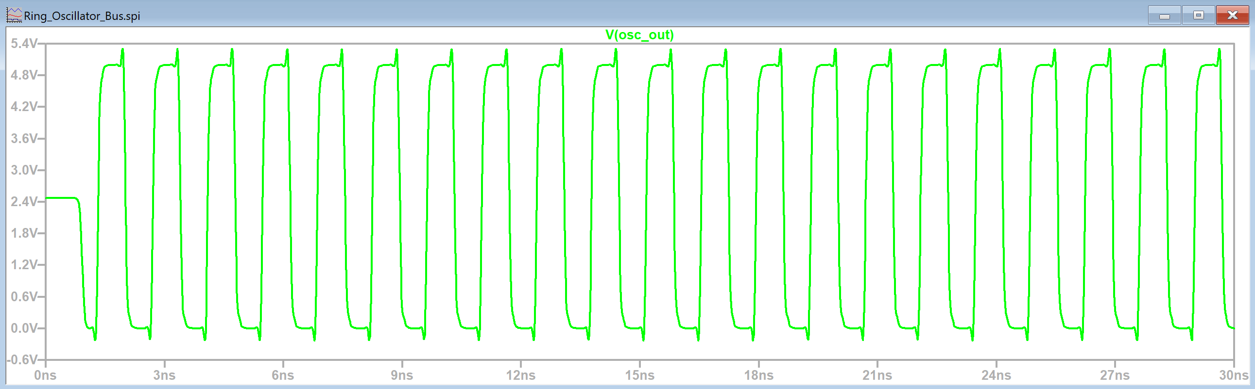 Figure 5. LTSpice simulation waveform of the ring oscillator bus schematic.