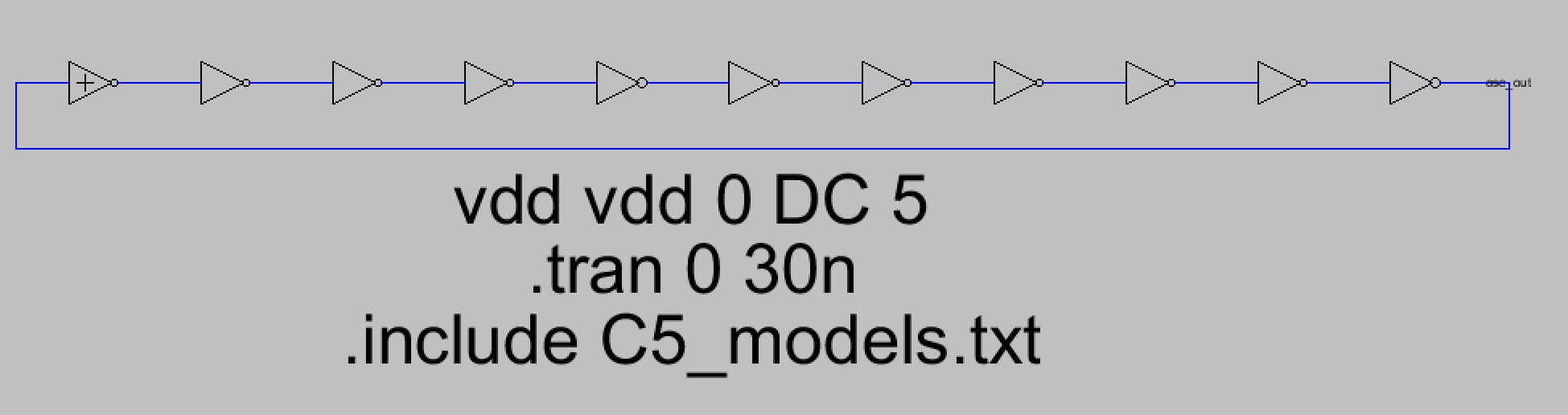Figure 2. Ring oscillator schematic that is made up of eleven inverters.