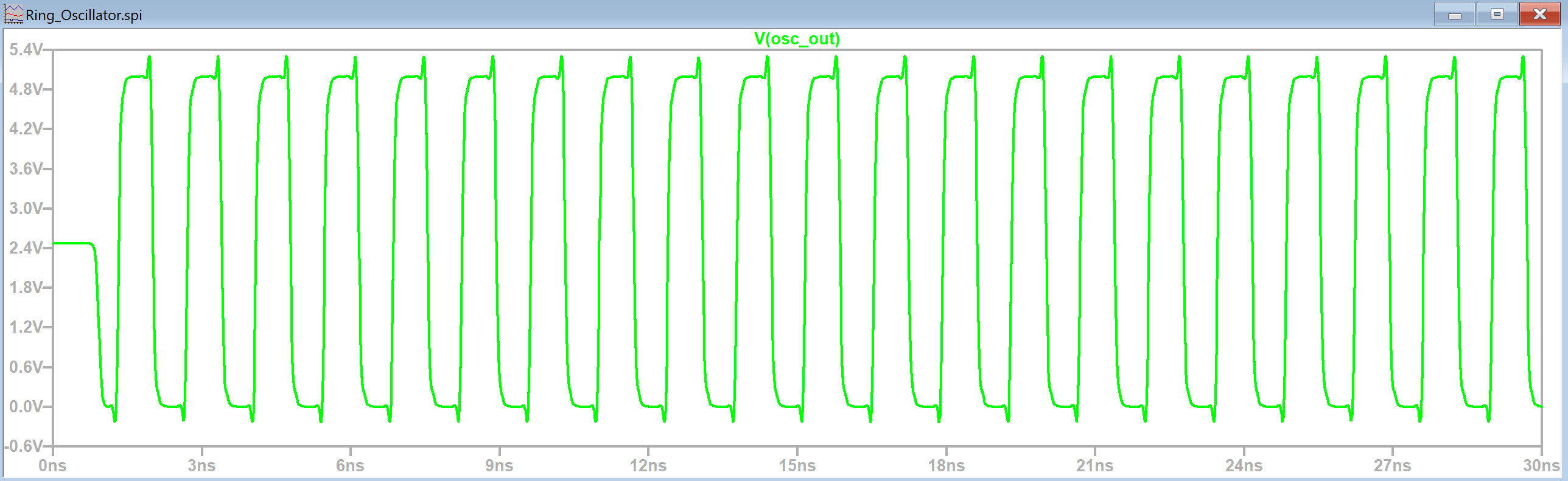 Figure 3. LTSpice simulation waveform of the ring oscillator.