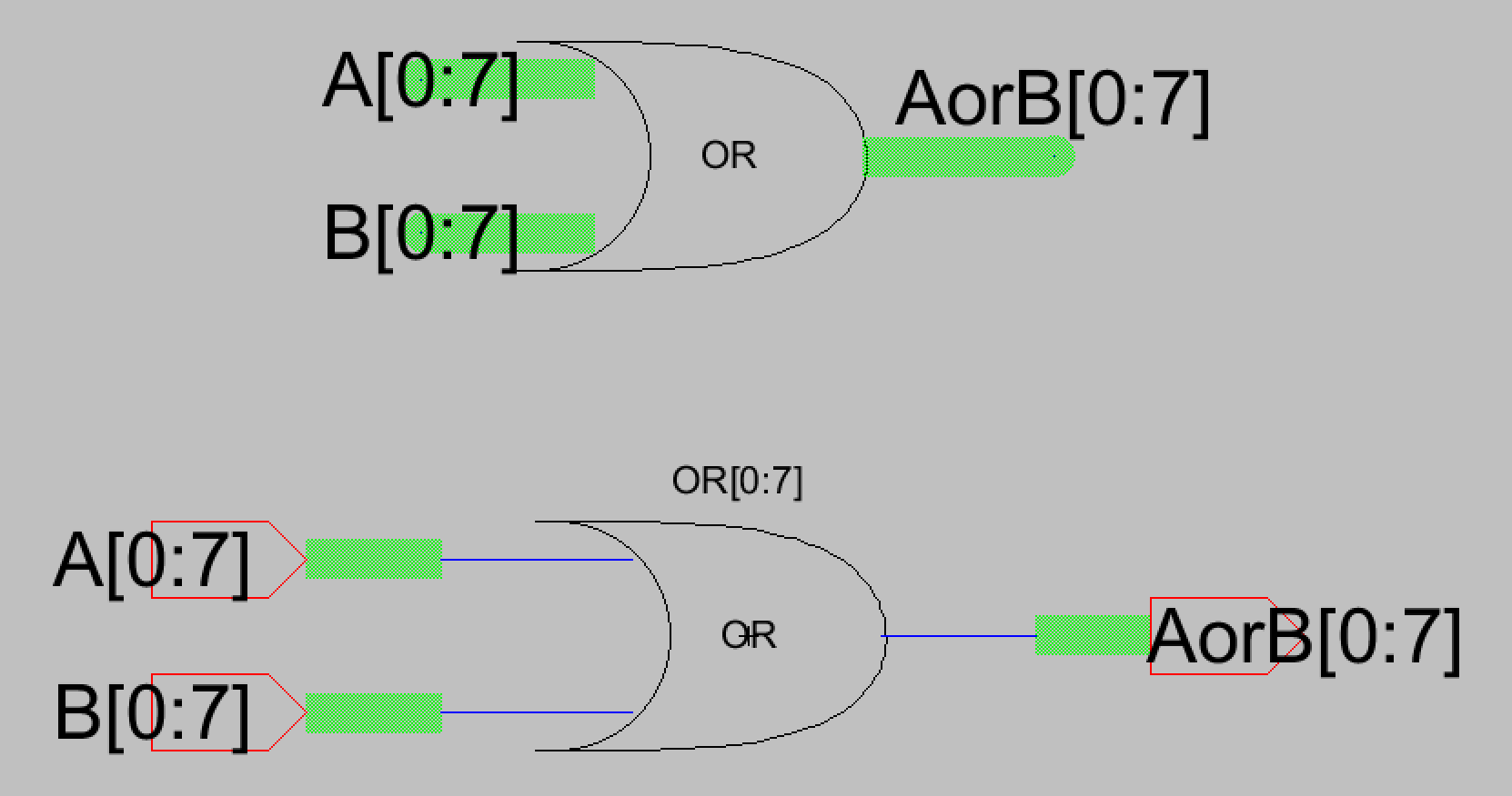 exported as A[0:7] and B[0:7] just like the AND gate and the output was