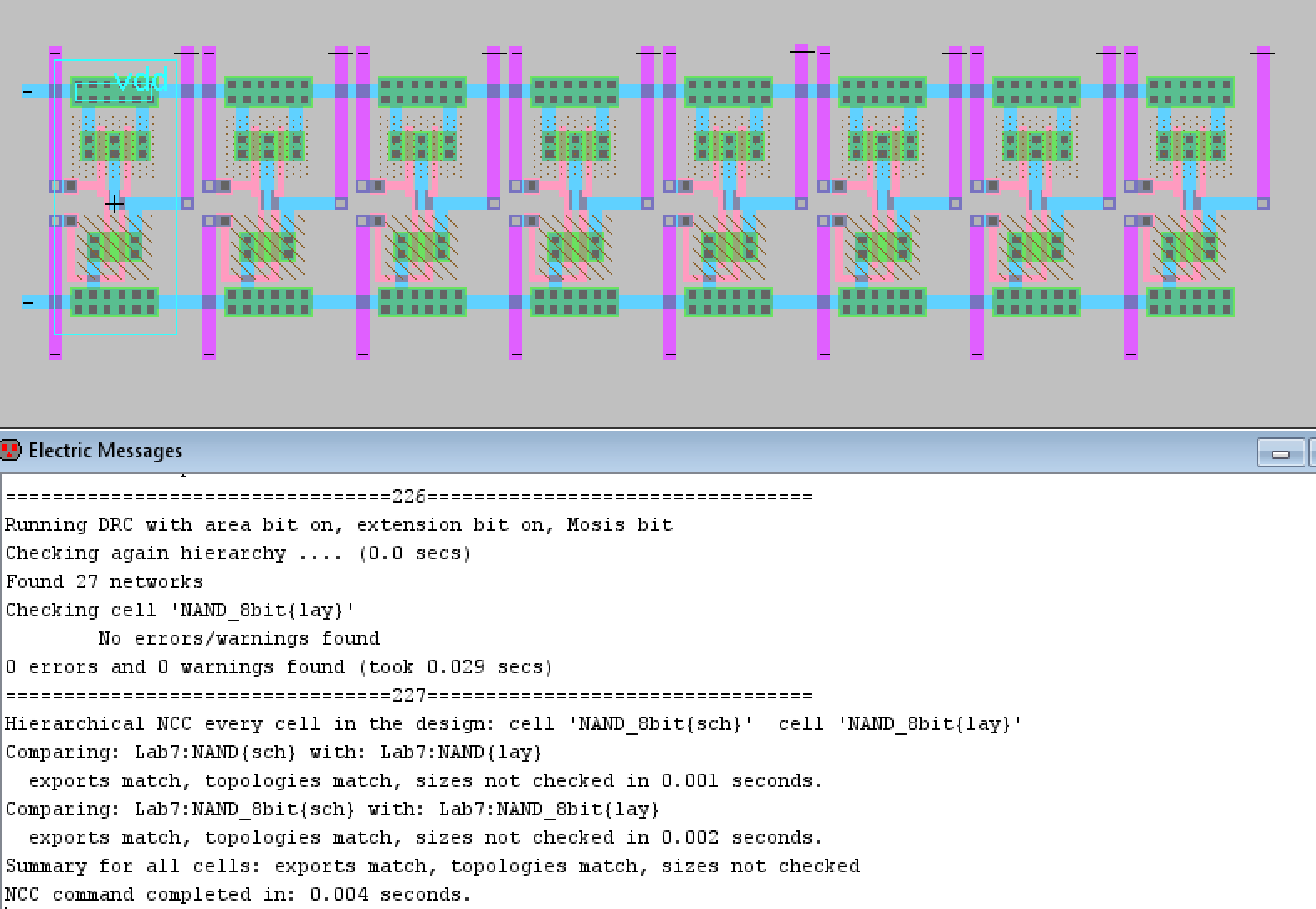 Figure 28. Final 8-bit NAND gate layout view with good DRC and NCC check results.