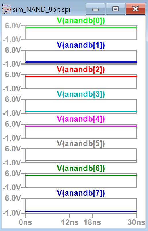 Figure 27. LTSpice simulation plots for the 8-bit NAND gate outputs.