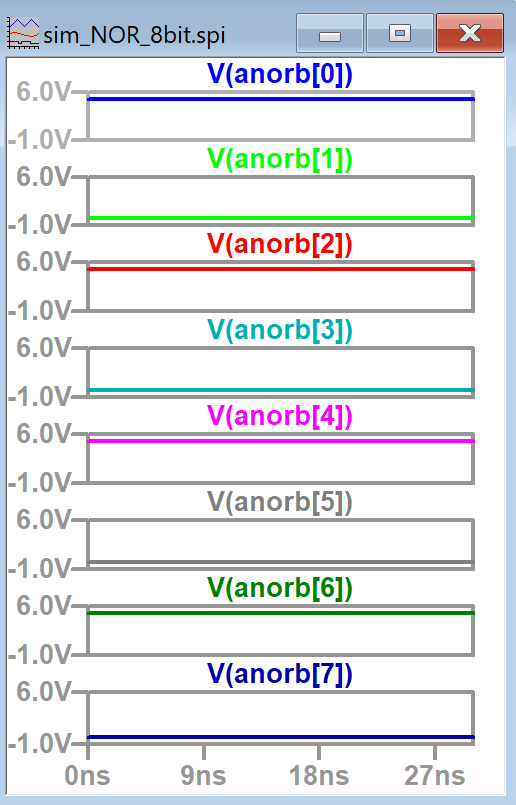 high if both inputs are zero. The LTSpice simulation verified the 8-bit