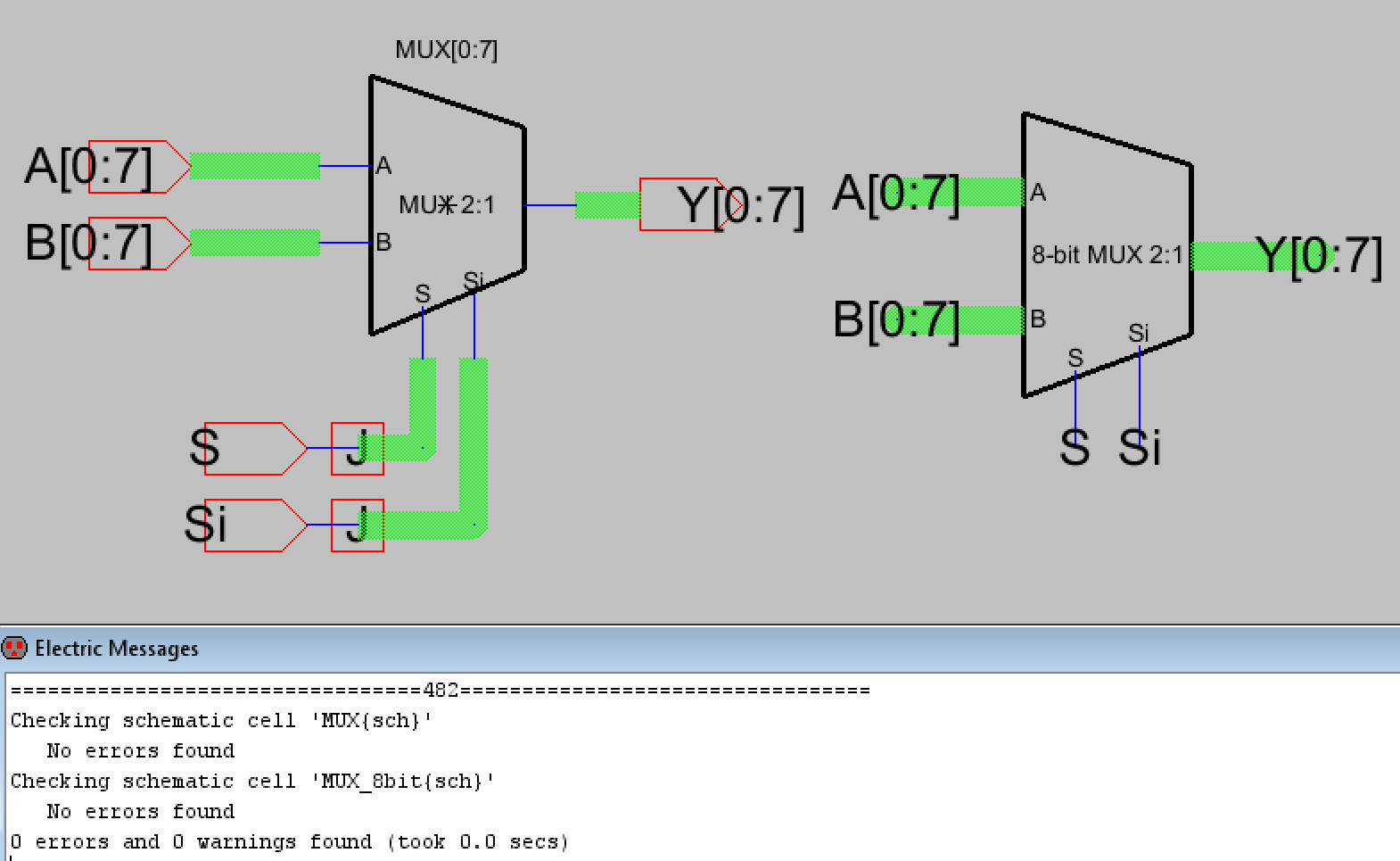 Now that the schematic and icons for the 2-1 MUX and 8-bit MUX were