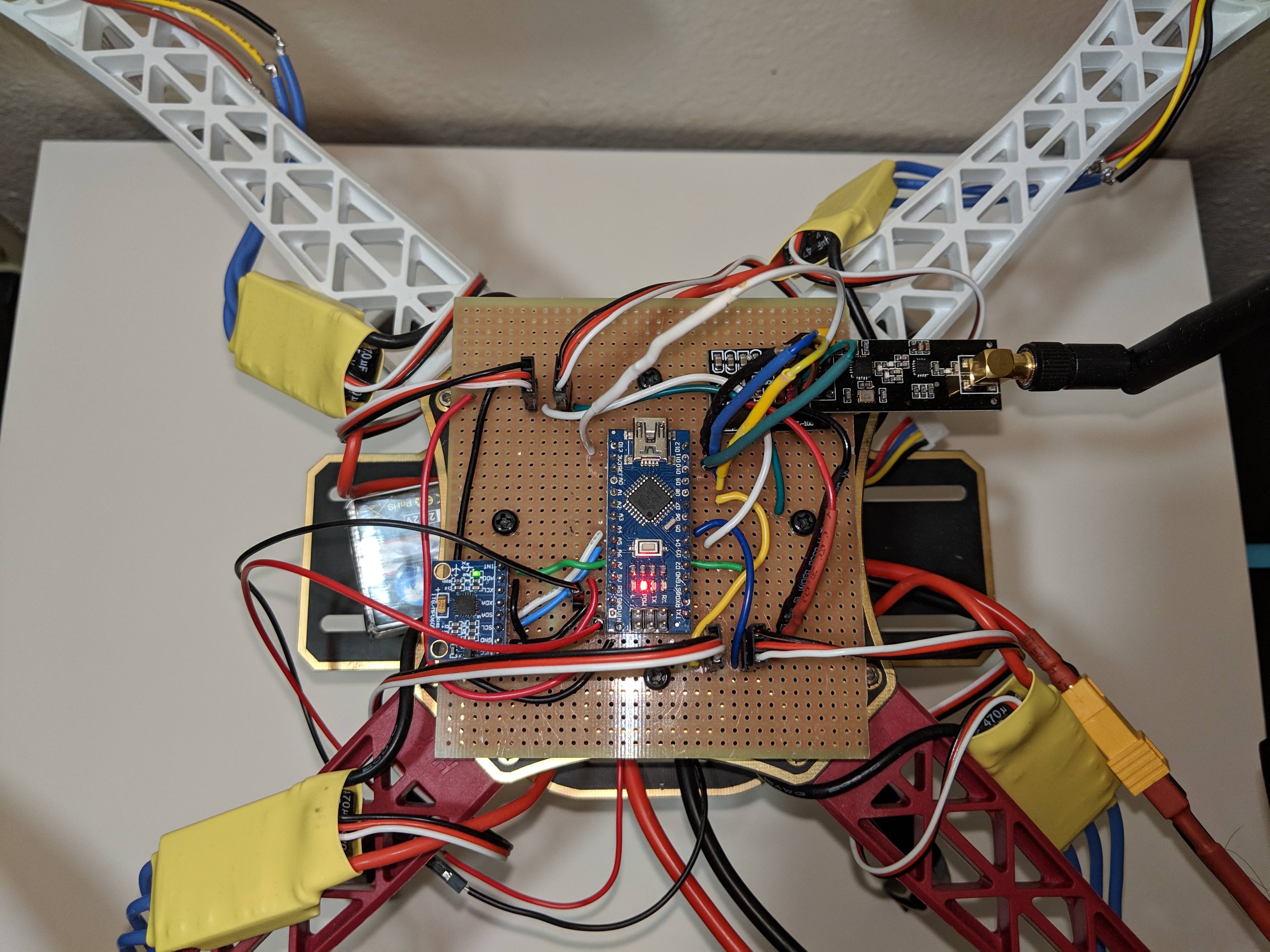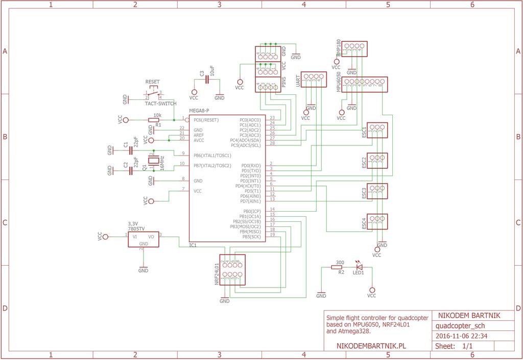 to the MPU6050 and NRF24L01+ in addition to the ESC pin headers. The