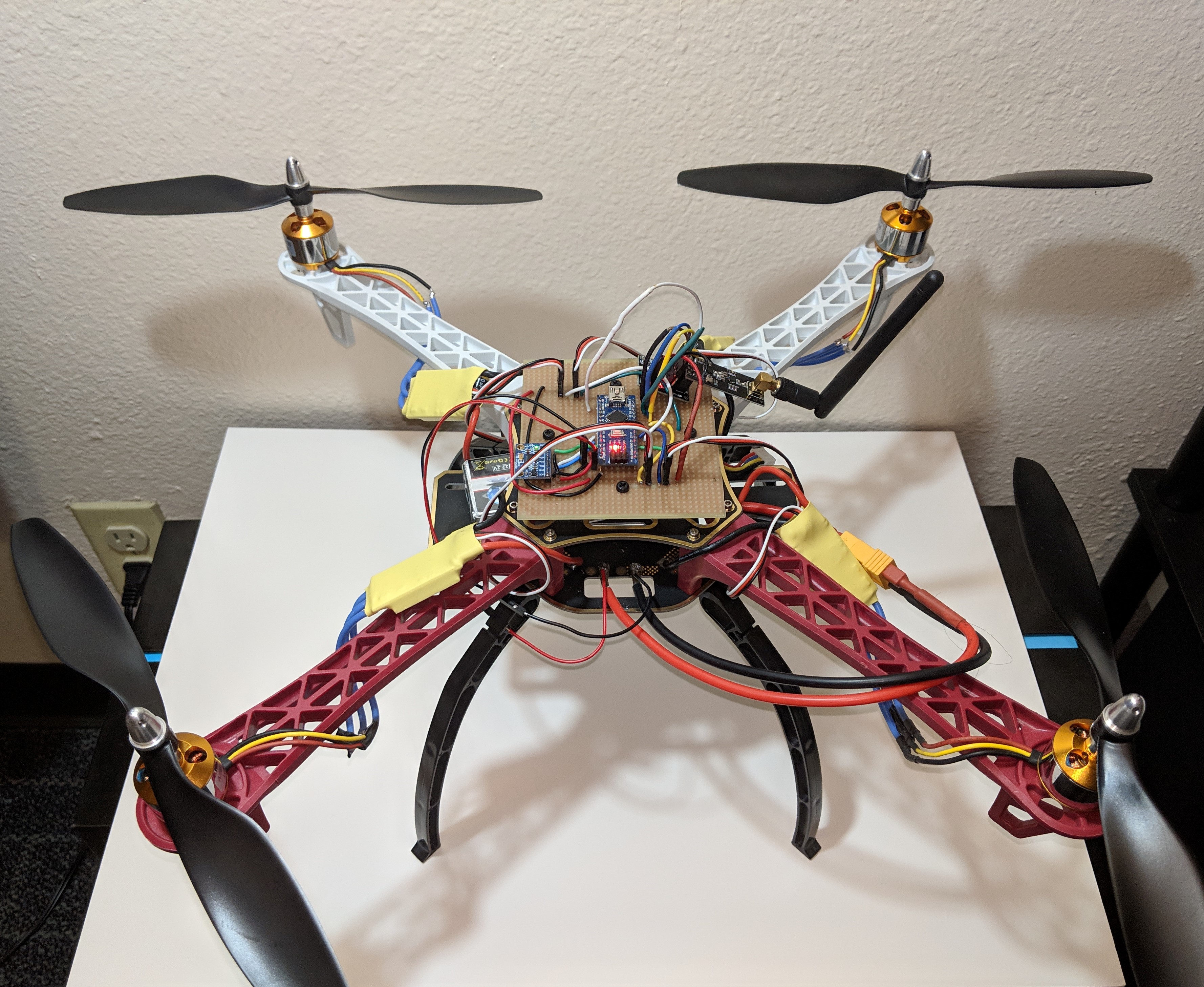 between Flight Controller 2.0 (top), Arduino Uno (left), and Flight
