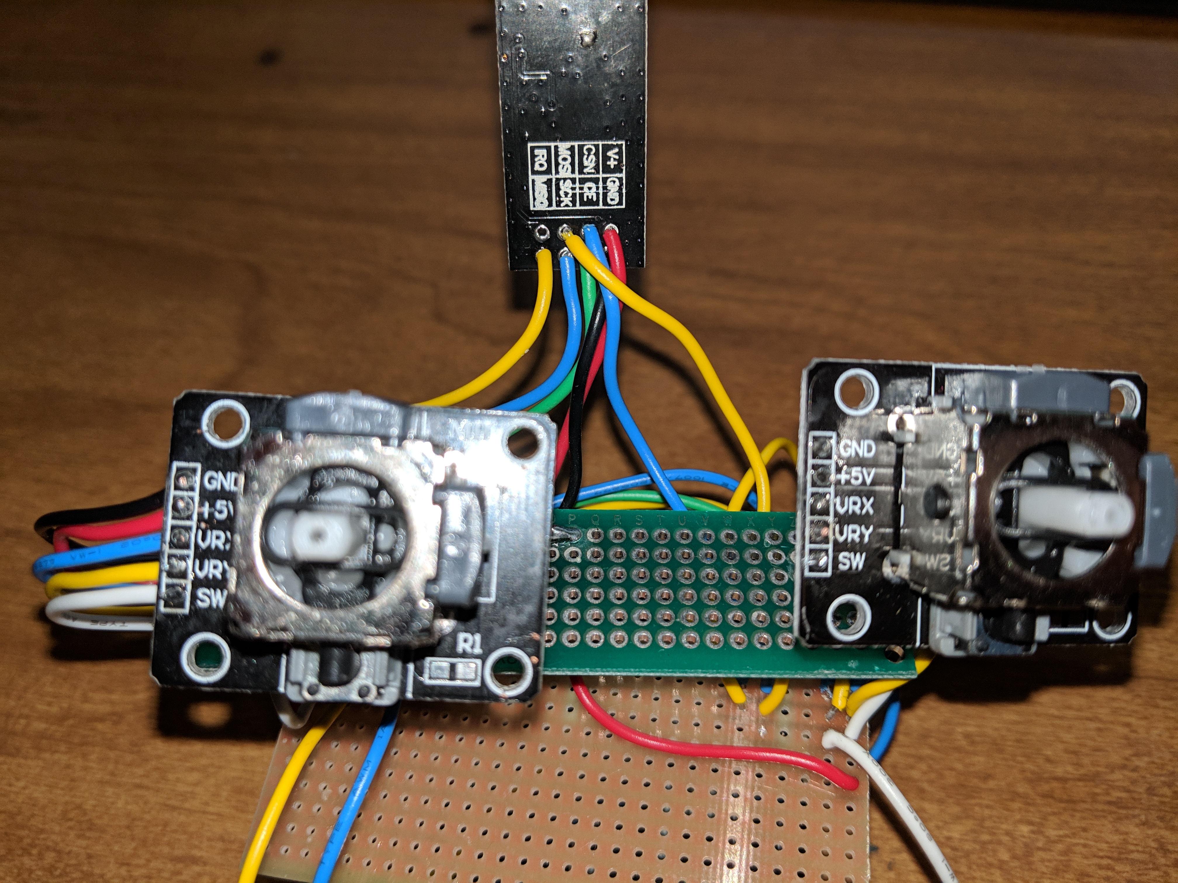 pins for the joysticks are power, ground, VRX, VRY, and SW. VRX and VRY