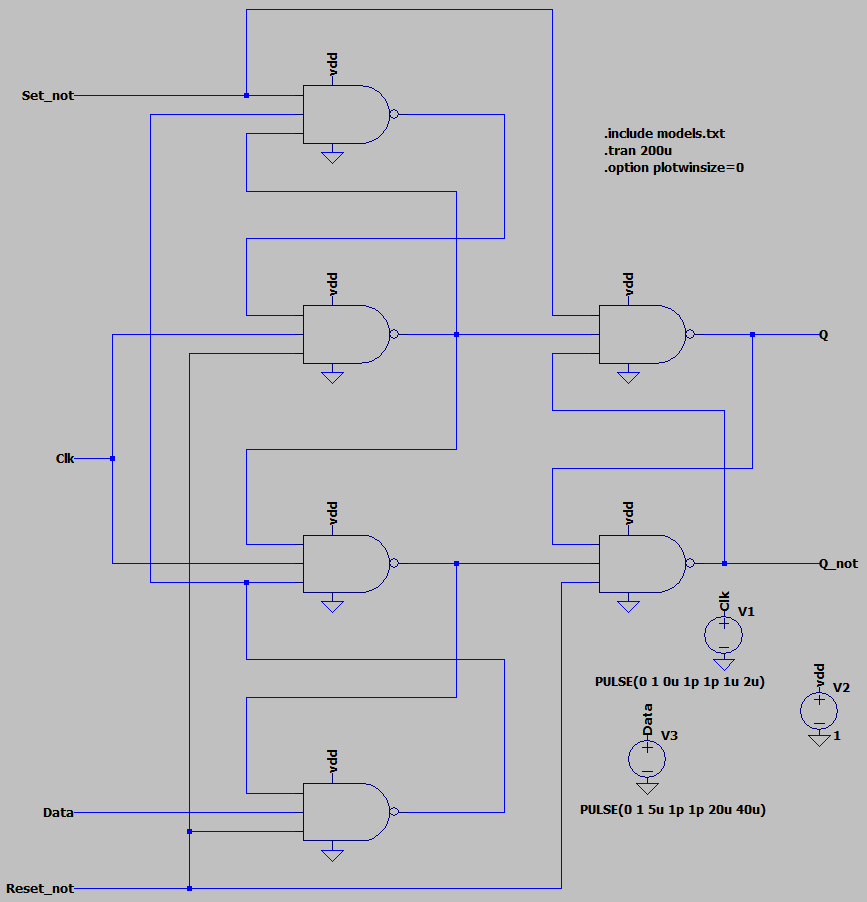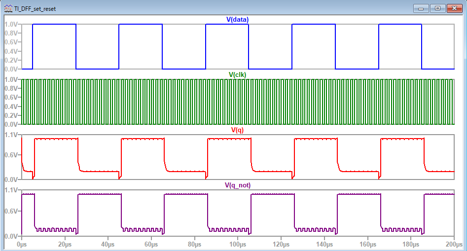 developed using multiple NAND3 gates which was converted into a symbol. The TI DFF schematic was made and run