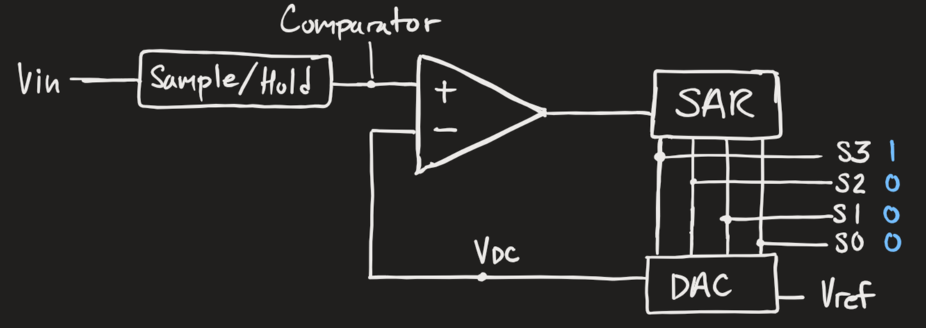 the '1' shifted right from S3 to S0, which means our SAR block can
