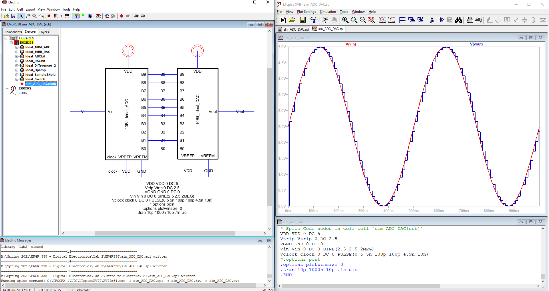 ideal ADC design from Task 2. Both resulted in an LTSpice plot similar to Task 1's