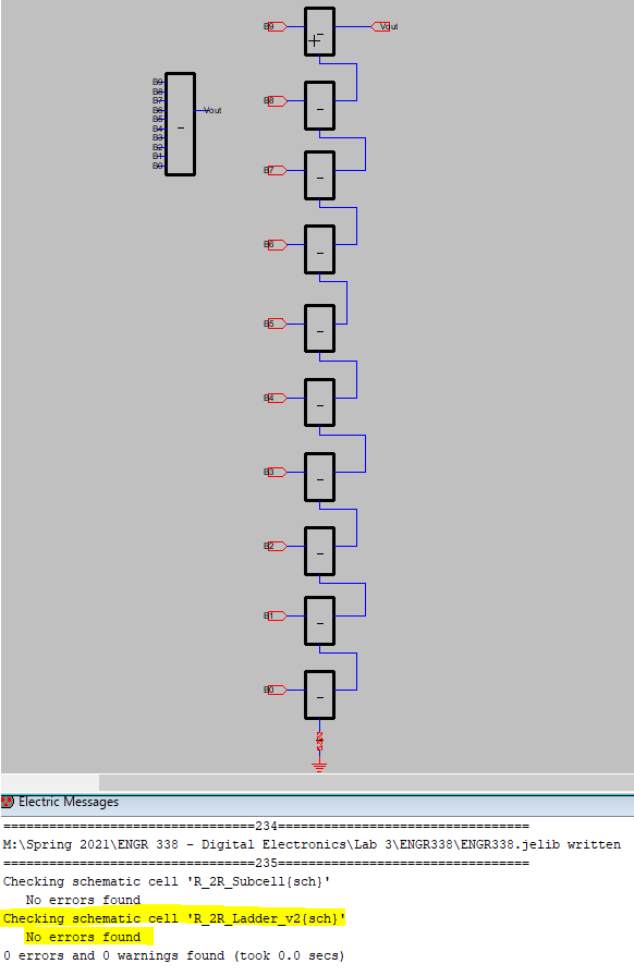 for me. Developing and implementing different layouts as well as a subcell in Electric were the two newer features emphasized in this lab. The R_2R_Ladder